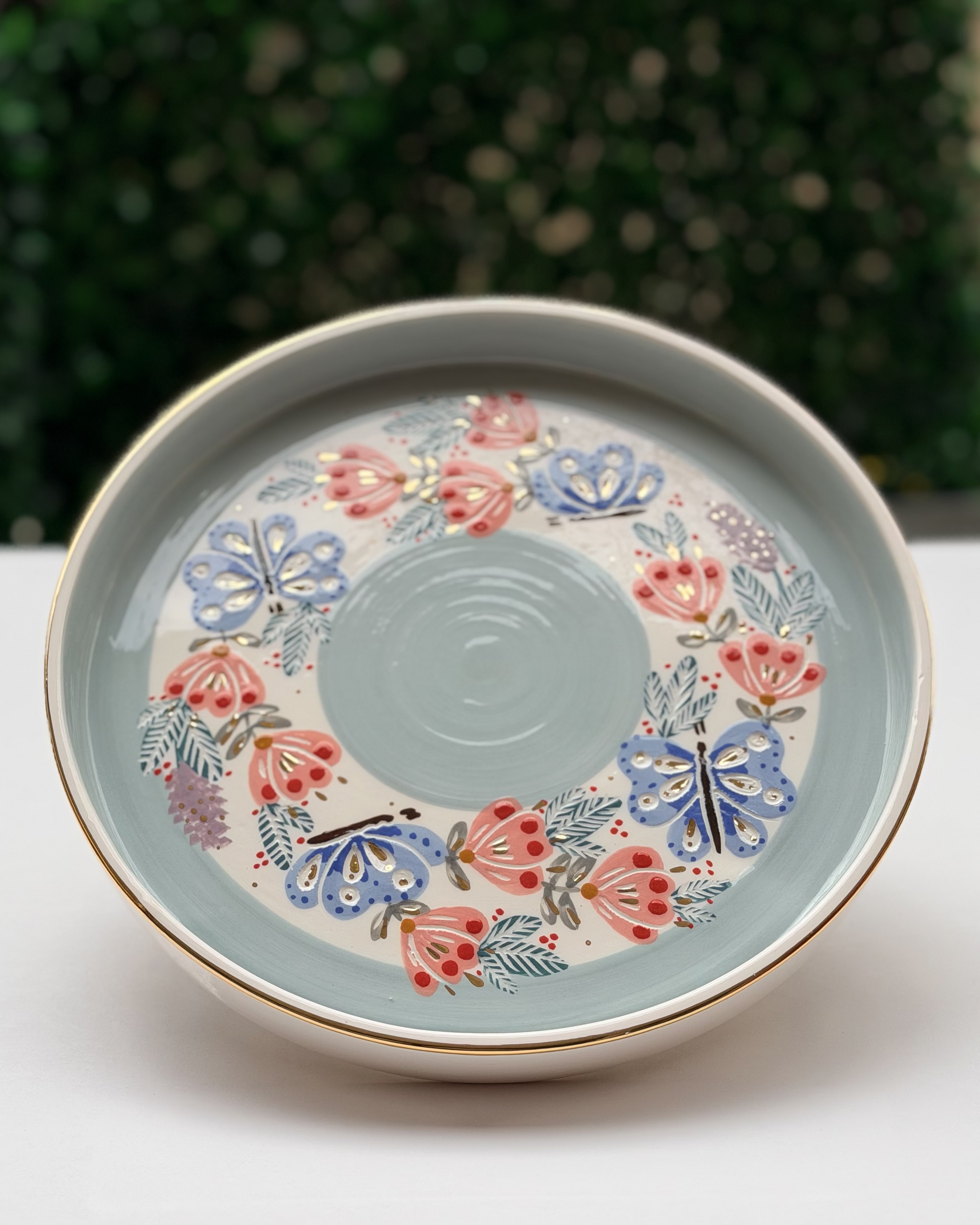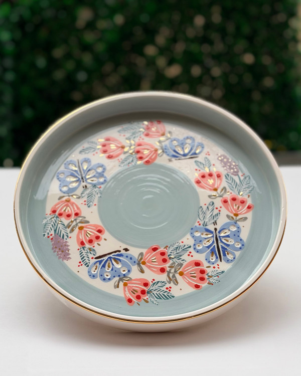 دیس پذیرایی قطر ۲۷ سانت طرح گل و پروانه آبی