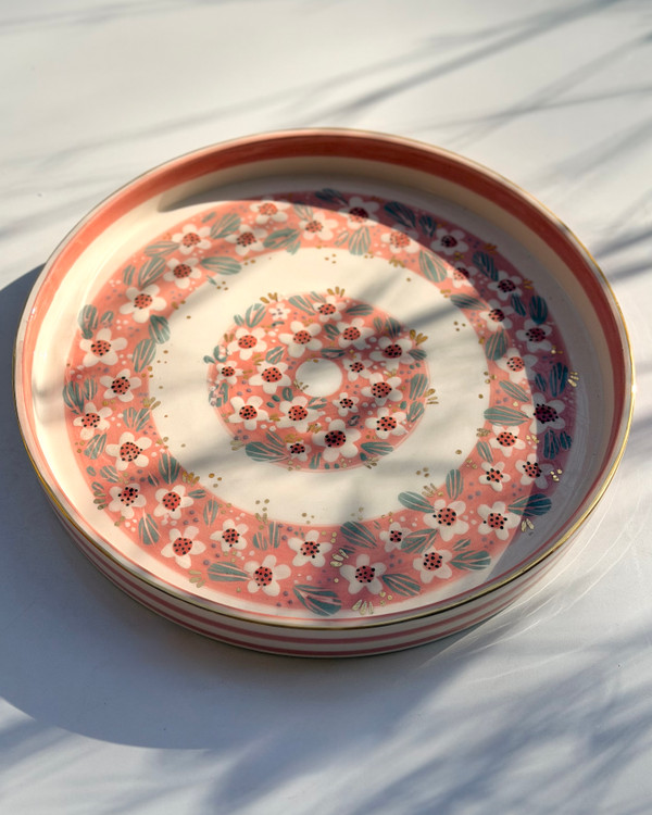 دیس پذیرایی سرامیکی دستساز داخل کارگاه ما ساخته میشه و تمام نقاشیهاش با دست انجام شده، برای همین هر قطعه حس و شخصیت خاص خودش رو داره.