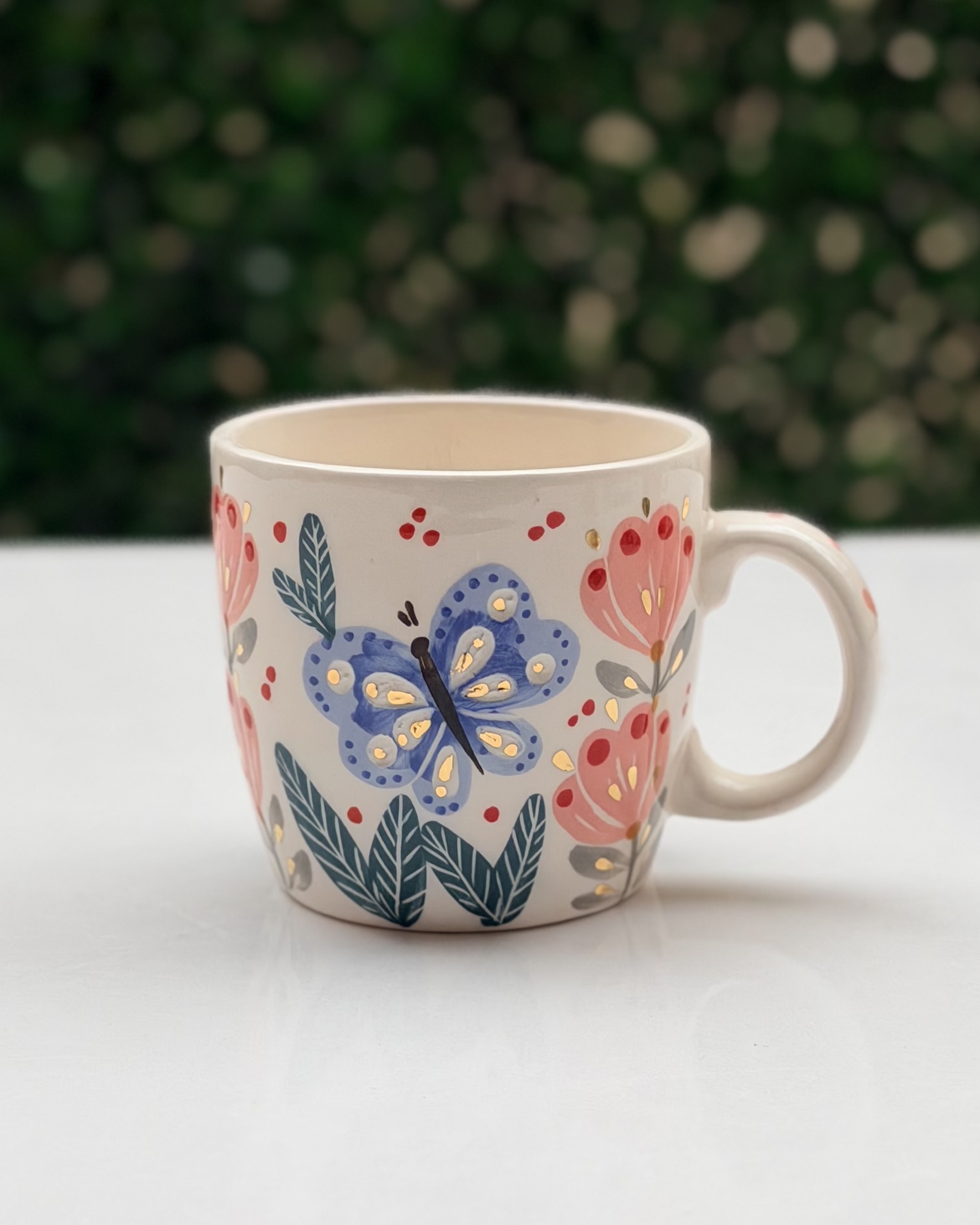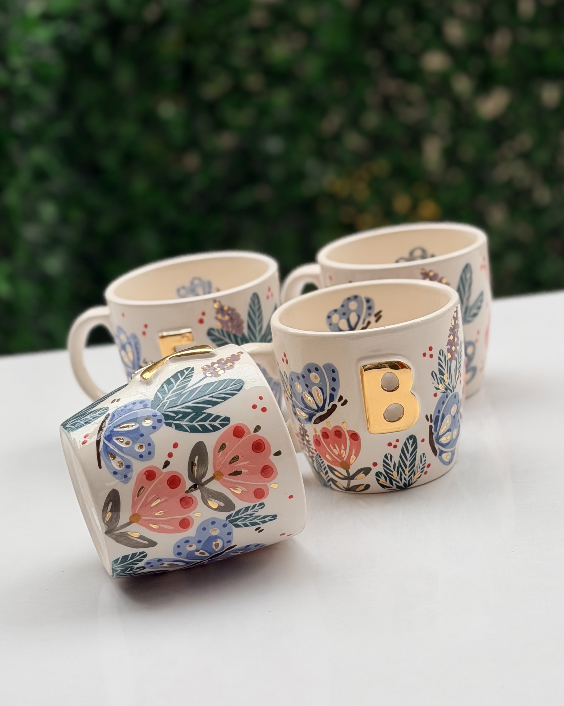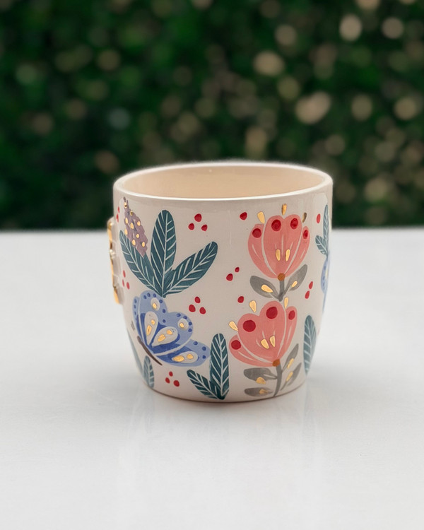 ماگ حروف گل و پروانه آبی