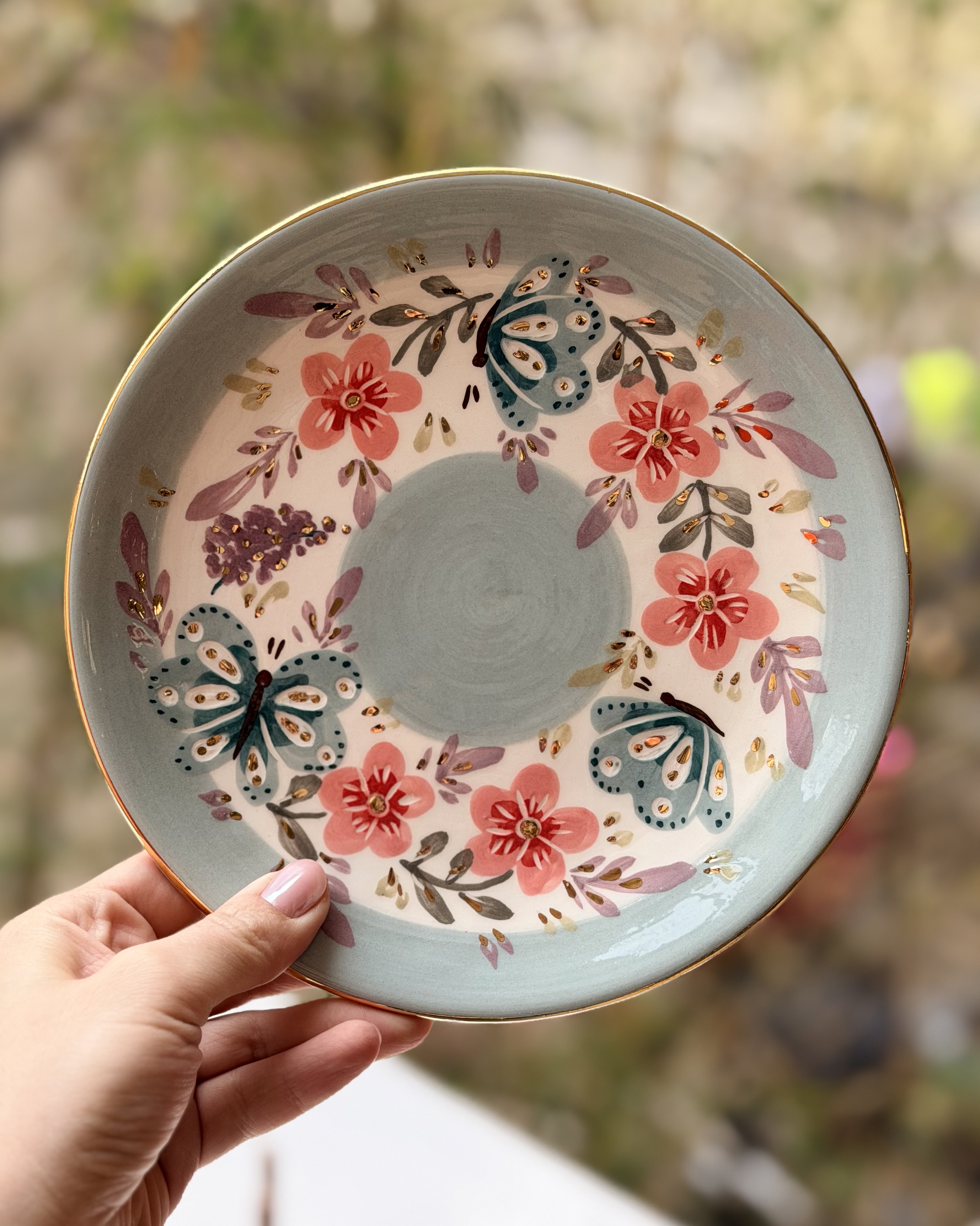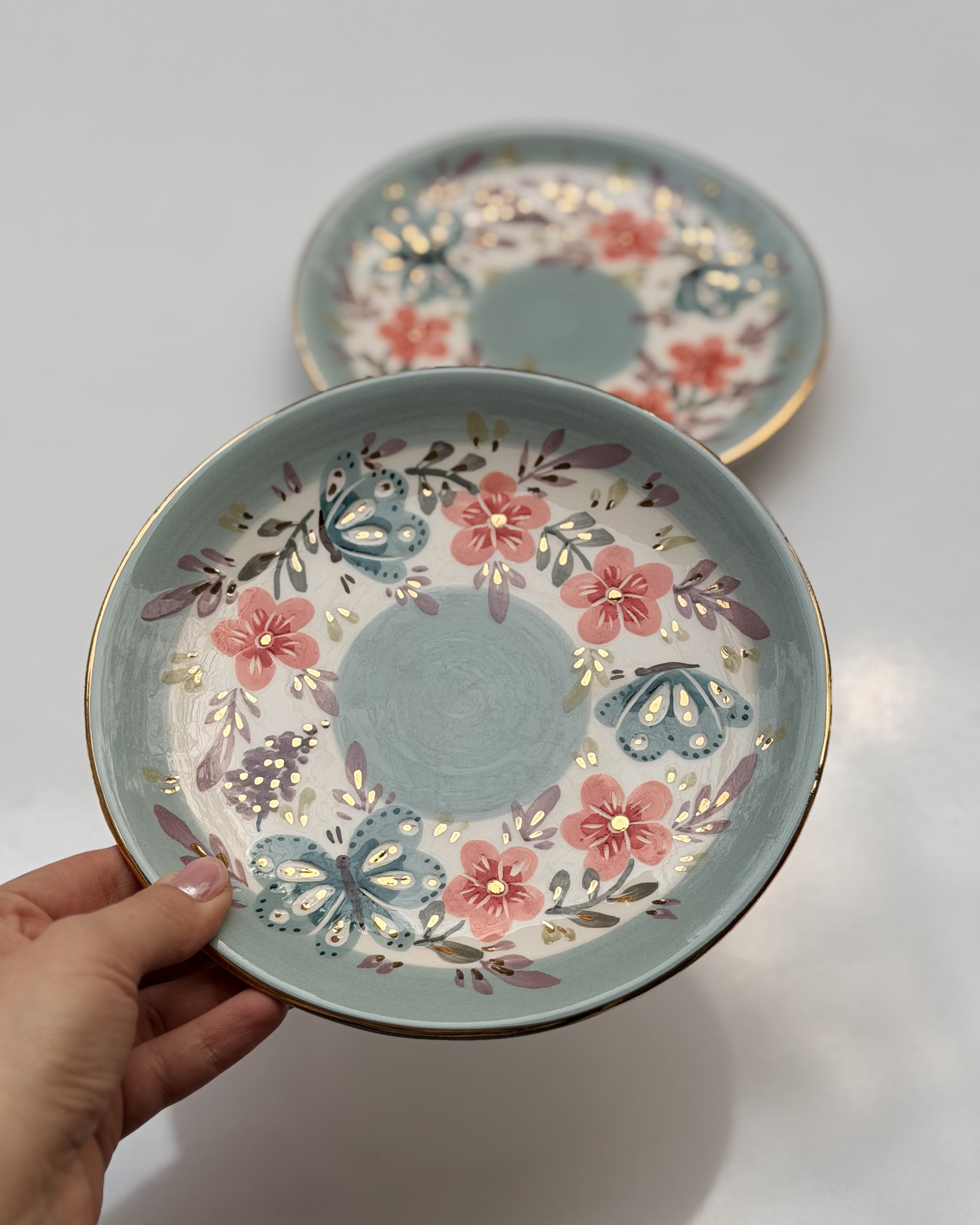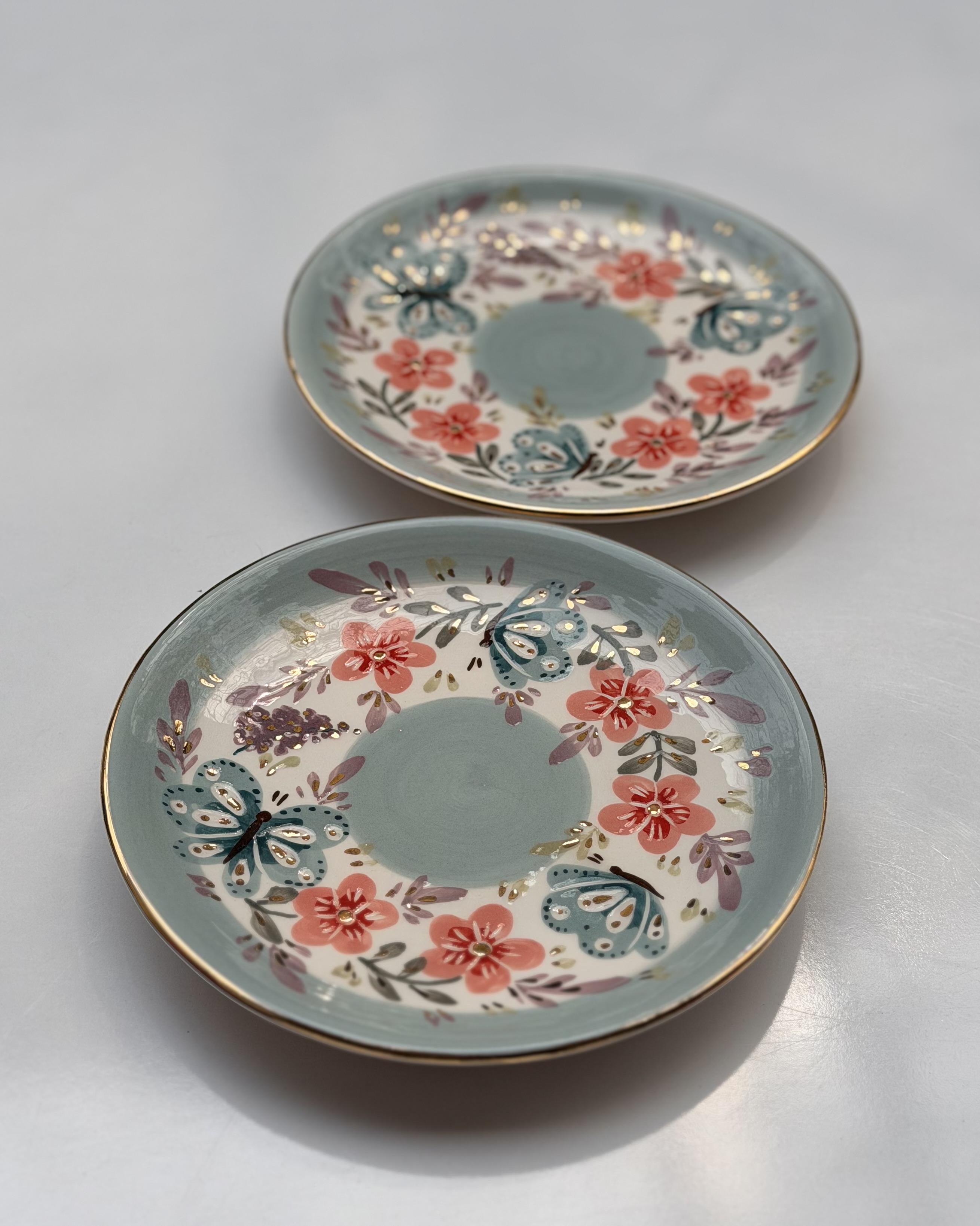 پیشدستی طرح پروانه سبز و گل صورتی قطر ۲۰