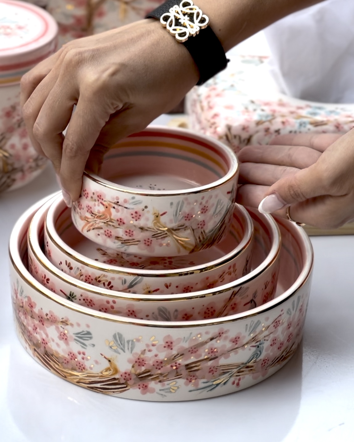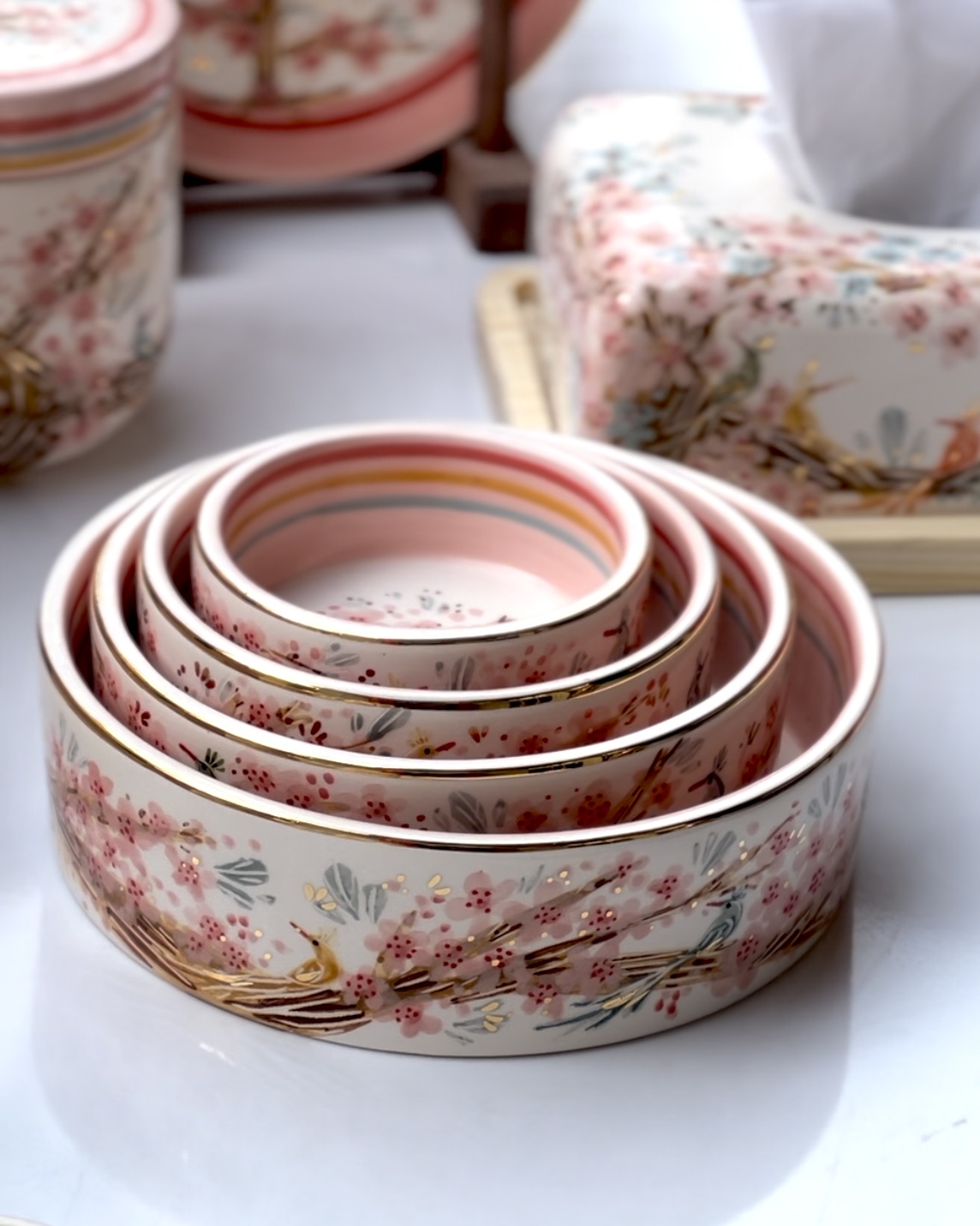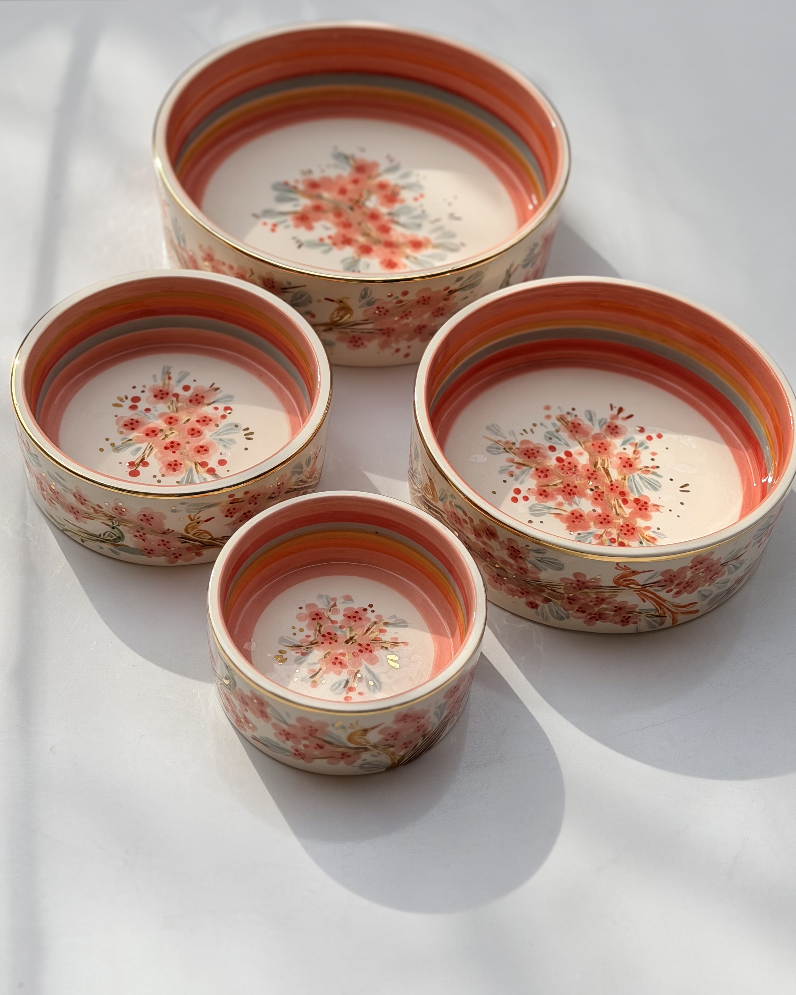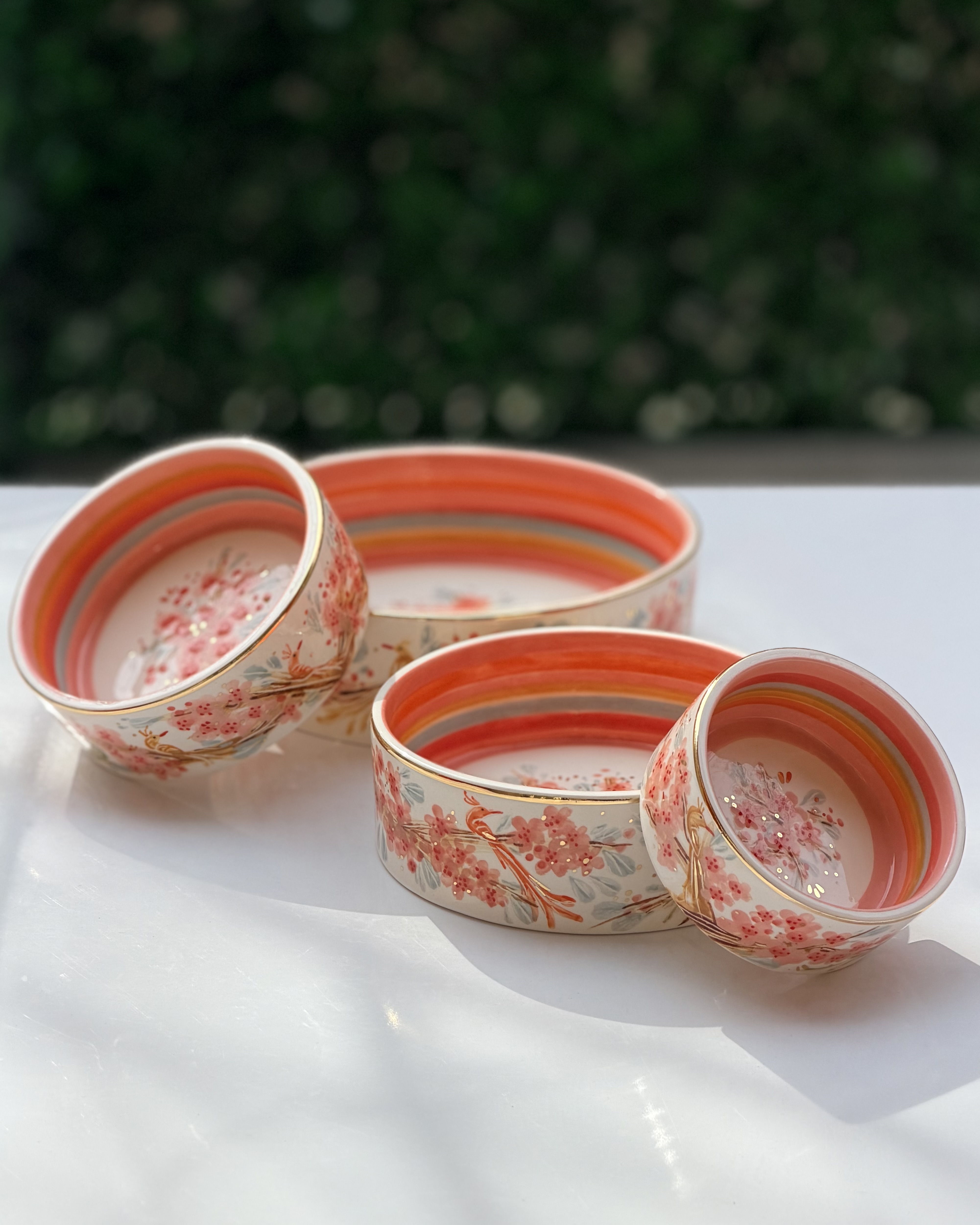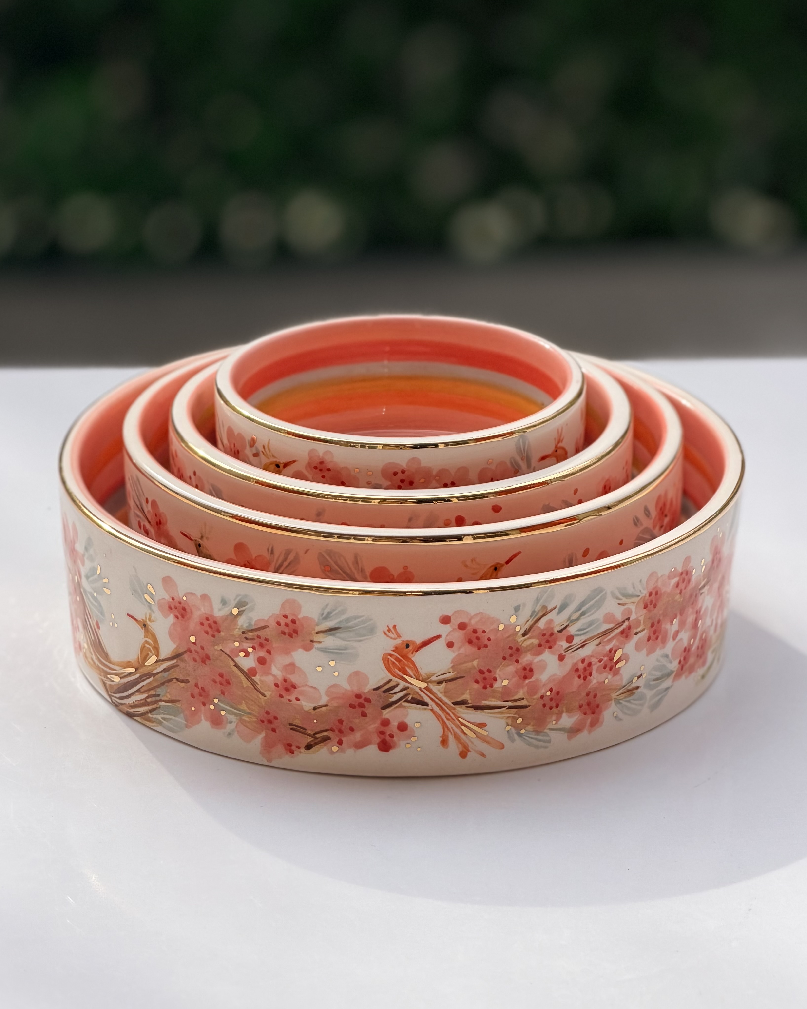 کاسه تو در تو طرح پرنده رنگی